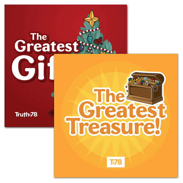 Lead children on a journey to discover 10 essential truths of the gospel, which culminate in the greatest treasure/gift of all.