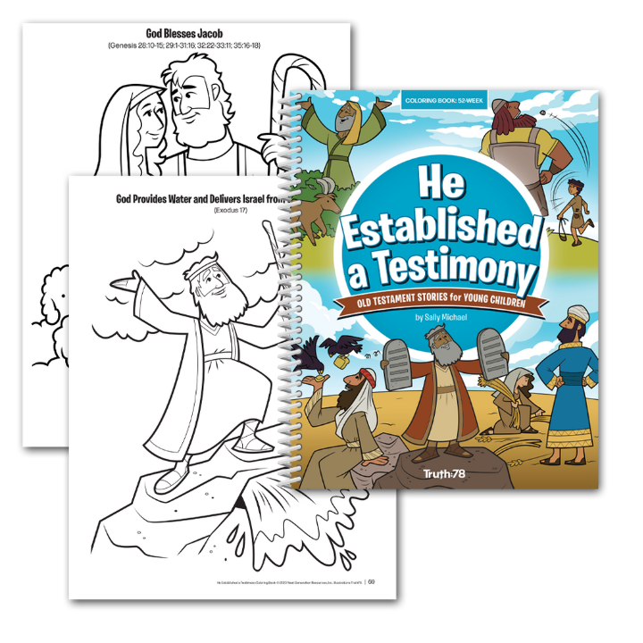 While designed to be used with the He Established a Testimony curriculum, it can also be used as a standalone coloring book.