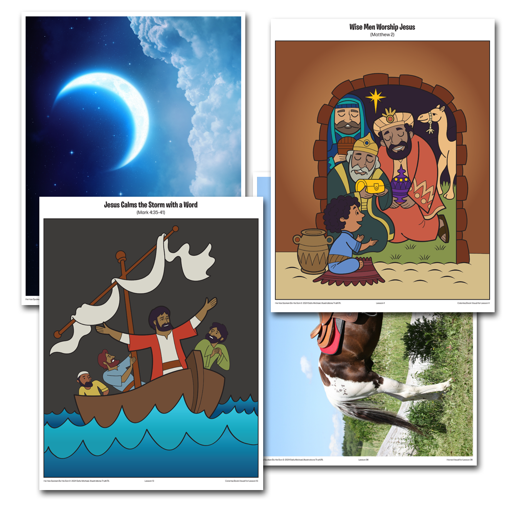 A few teaching visuals for the opening illustrations are available on 8.5" x 11" heavy duty cardstock for use in teaching the curriculum.