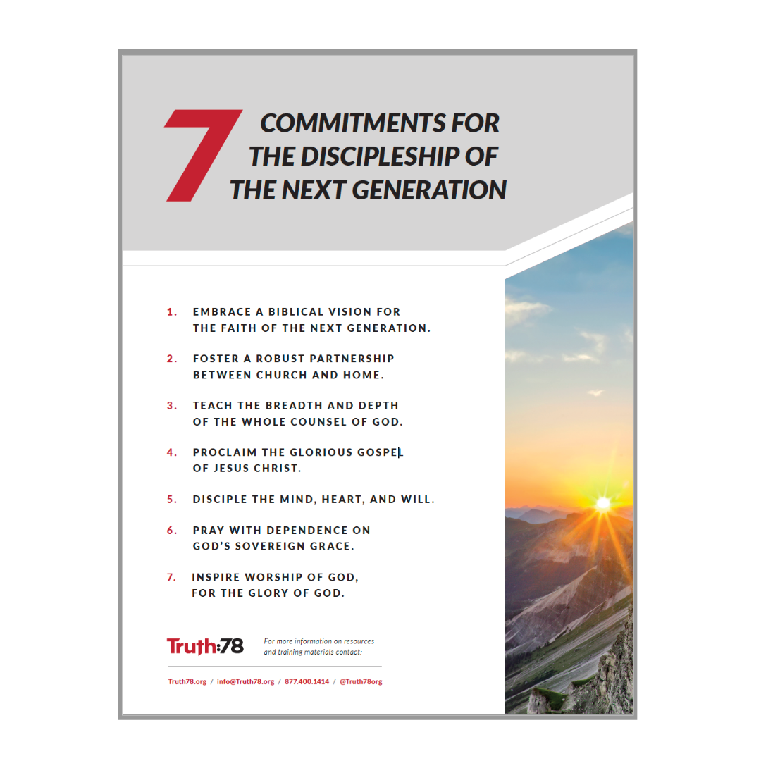 Share the 7 commitments for the discipleship of the next generation with this 8.5 x 11 flyer.