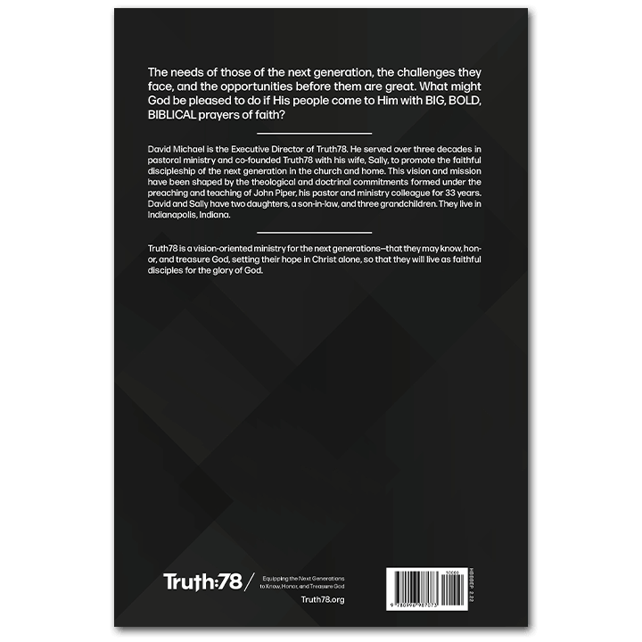 Big, Bold, Biblical Prayers challenges parents, grandparents, pastors, children's ministry leaders, teachers, and all who care about the next generation to intentionally pray for the children in their family, church, and around the world. David Michael casts a vision for how and why we need to pray big, bold, biblical prayers, and provides 17 prayers you can join him in praying for the next generation along with relevant Scripture passages to spark your prayers.
