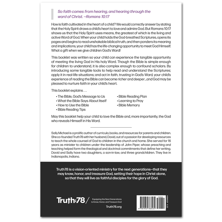 When your child holds the God-breathed Scripture, opens its pages and begins to read unshakable biblical truth, and then ponders its meaning and implications, your child has the life-changing opportunity to meet God Himself. What a gift it is when we give children God’s Word! This booklet was written so your child can experience the tangible opportunity of meeting the living God in His holy Word.