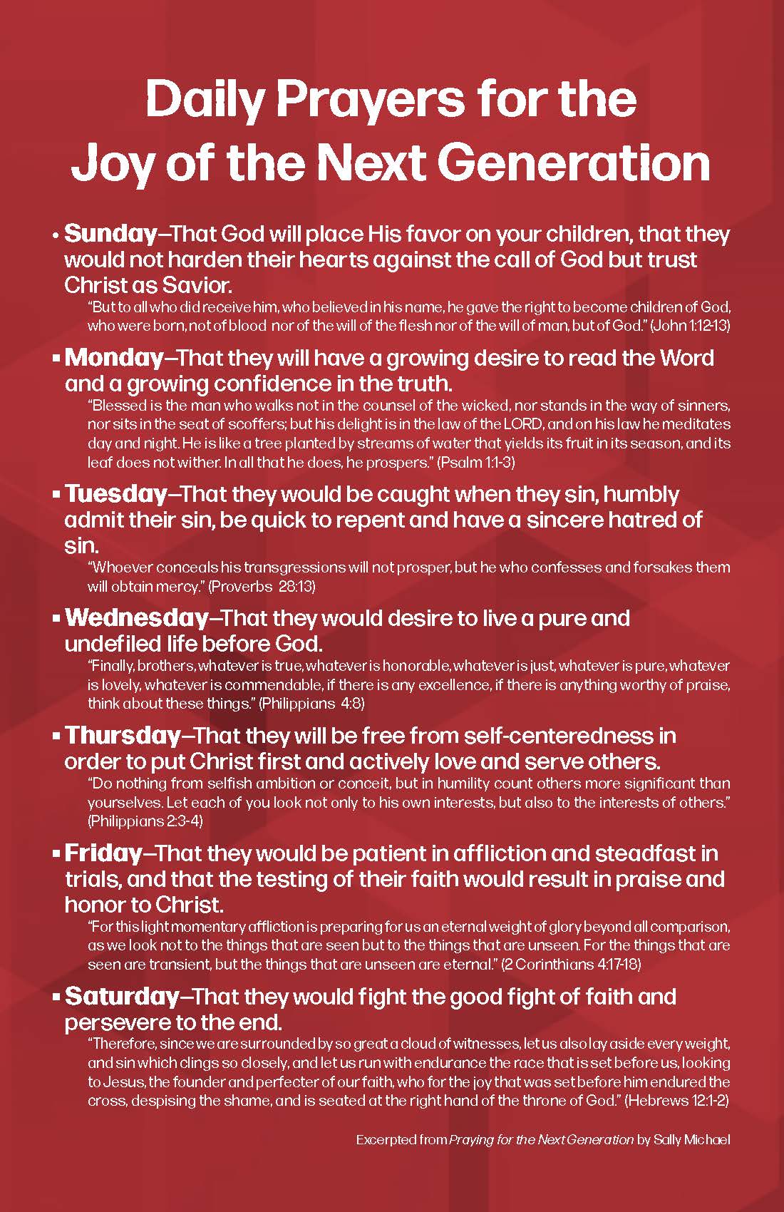 DetailsThis booklet offers a practical method for using Scripture to pray for the children in your life and to leave a spiritual inheritance to the next generation.